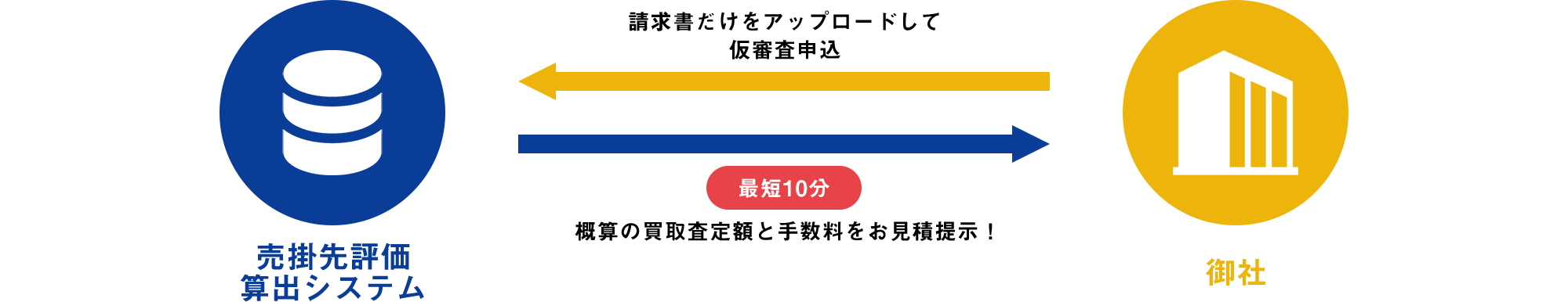 - 売掛先企業様の信用状況と御社との取引期間を基に買取査定額を自動算出できます。